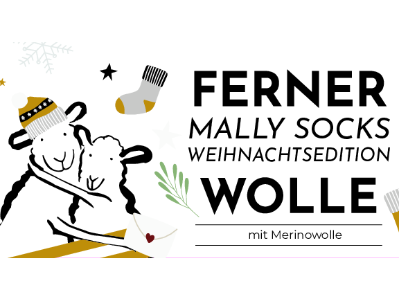 Ich habe verwendet: 5 Knäuel „Mally Socks Weihnachtsedition“ Farbe 21.12.23 (150g = 450m) und für die Bordüre „Vielseitige 125“ (50g = 125m) 2 Knäuel grün Farbe 16, 1 Knäuel rot Farbe 7, 1 Knäuel weiß Farbe 1, 1 Knäuel hellgrau Farbe 2, 1 Knäuel gelb Farbe 5“ alles von Ferner Wolle. Gestrickt habe ich mit Rundstricknadel 3,5mm (40cm bis 120cm). Außerdem brauchst Du noch eine Häkelnadel 2,5mm für die Nase und ein paar Maschen-markierer. Für die Pompons habe ich die kleinsten (3cm) Scheiben aus dem Pomponset von INOX verwendet. Dem Set ist eine genaue Beschreibung beigefügt, wie die Pompons gemacht werden.