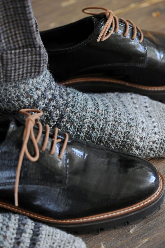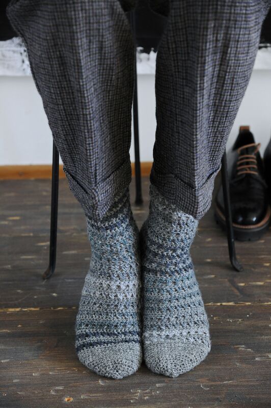 Diese Häkelsocken sehen auf den ersten Blick vielleicht unscheinbar aus, sind aber raffinierter als gedacht! Sie werden in einem speziellen Muster gehäkelt, wodurch die Socken eine spezielle Struktur bekommen. Die Farben sind edle Grau-Töne, die von ganz hellem Grau bis in ganz dunkles Grau übergehen. Durch einfach eMittel bekommen diese Socken also ihren ganz eigenen Charakter!