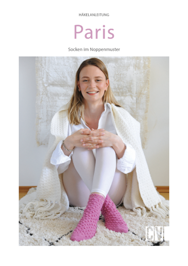 Die Anleitung umfasst 9 Seiten und beinhaltet eine detaillierte Beschreibung inklusive Bildern, der 4-Stufen-Grundanleitung zu Häkelsocken, einer Größentabelle für Häkelsocken und einzelnen Erklärungen zu bestimmten Maschen-Typen