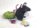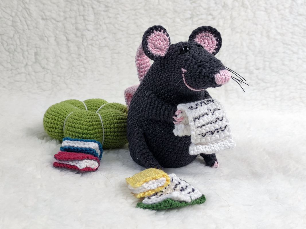Die Ratte wird mit angegebenem Garn etwa 12 cm hoch, auf dem Kissen sitzend etwa 16 cm.