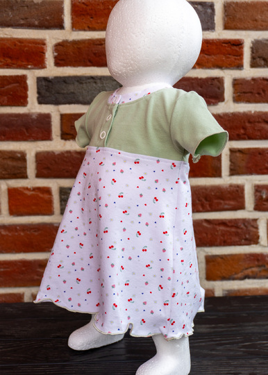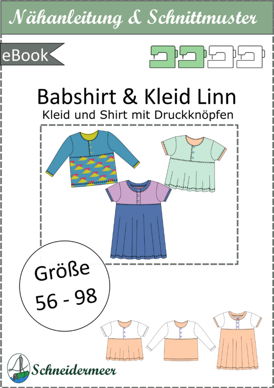 Das Modell „Linn“ ist ein Shirt bzw. Kleid mit senkrechter Knopfleiste für Babys und Kleinkinder aus Jersey. Die Teilungsnaht des Kleides ist im Empire-Stil (erhöhte Taille) und kann wahlweise mit einem engen oder weiten Saumteil kombiniert werden. „Linn“ kann als hüftlanges Shirt oder wadenlanges Kleid genäht werden.