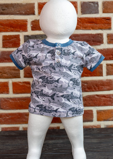 Die geraden Ärmel sind in kurz und lang enthalten, sodass du das Modell für warme und kühlere Tage nähen kannst. An den Ärmelsäumen können Saumbündchen genäht werden. Damit du deinem Kind das Shirt oder Kleid gut überziehen kannst, ist an der vorderen Mitte eine senkrechte Knopfleiste eingearbeitet.