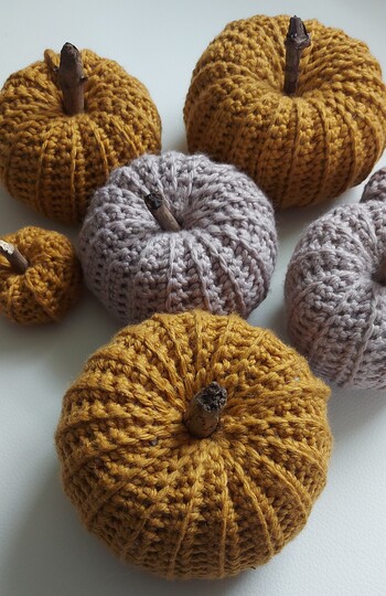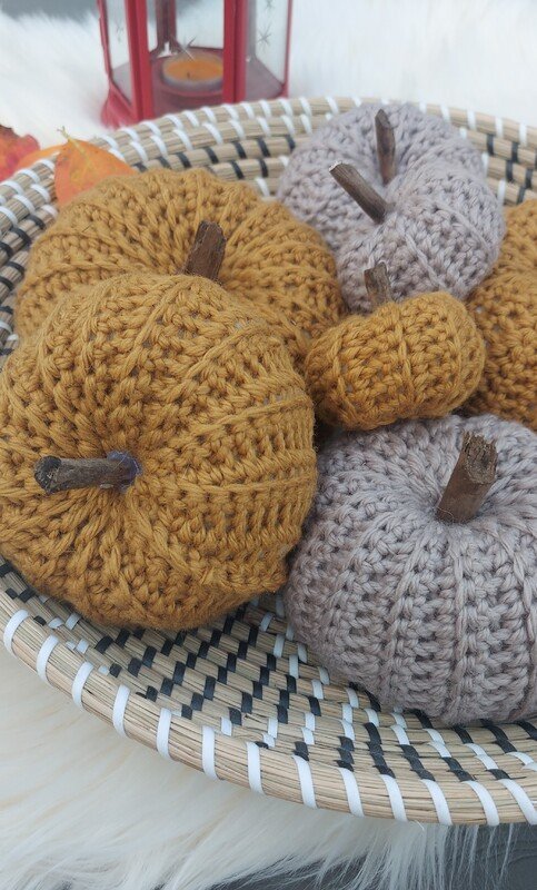 Kürbisse dürfen in der Herbstzeit auf keinen Fall fehlen. Sie können in wunderschönen Herbstfarben und in 3 verschiedenen Größen nachgehäkelt werden und zaubern sofort ein herbstliches Ambiente. Mit vielen Bildern und der Schritt-für-Schritt Anleitung können das auch Anfänger.