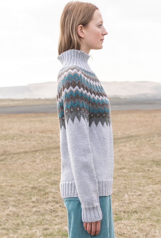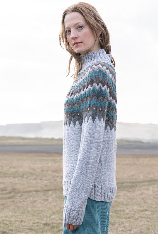 Casual, entspannt und mit jeder Menge Petrol: Der Nordic-Style ist nicht nur besonders lässig, sondern entspricht auch dem aktuellen Zeitgeist. Du beginnst mit den klassischen Bündchen in Rippenoptik und strickst dann alle vier Teile nacheinander glatt rechts. Dann werden alles durch die Rundpasse zusammengefügt, die sich mit plakativen Zacken in Szene setzt. Der Stehkragen – ebenfalls im Rippenmuster – strickt sich dann fast von allein. Alle Nähte schließen und du hast aus reiner Schurwolle einen zeitlos-klassischen Pulli, der dich länger als eine Saison begleiten wird,
