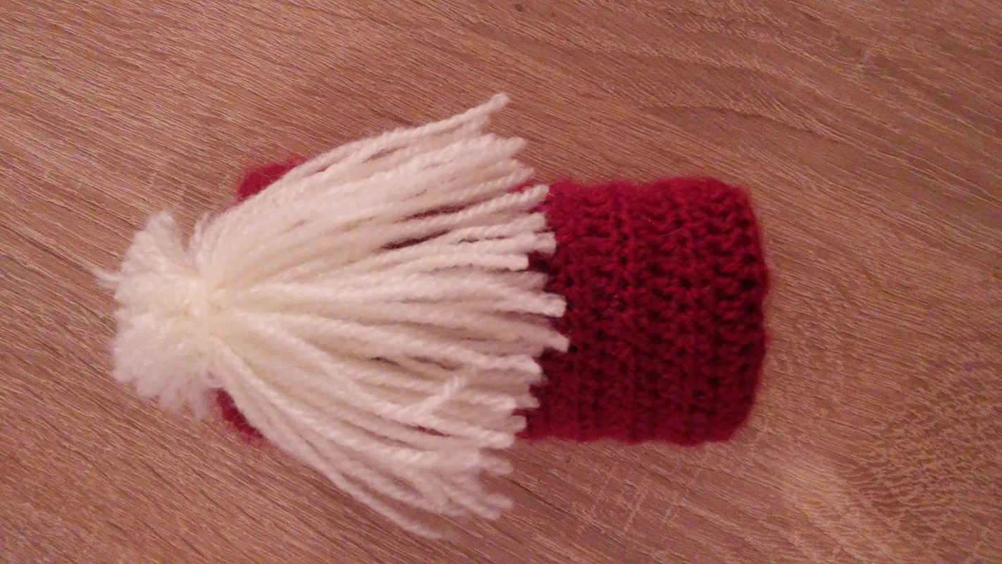 Ihr braucht lediglich Grundkenntnisse im Häkeln (Luftmaschen, halbe Stäbchen und Kettmaschen), eine leere Klorolle, eine Häkelnadel, weiße und rote Wolle und schon könnt ihr loslegen.