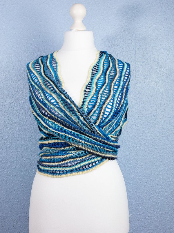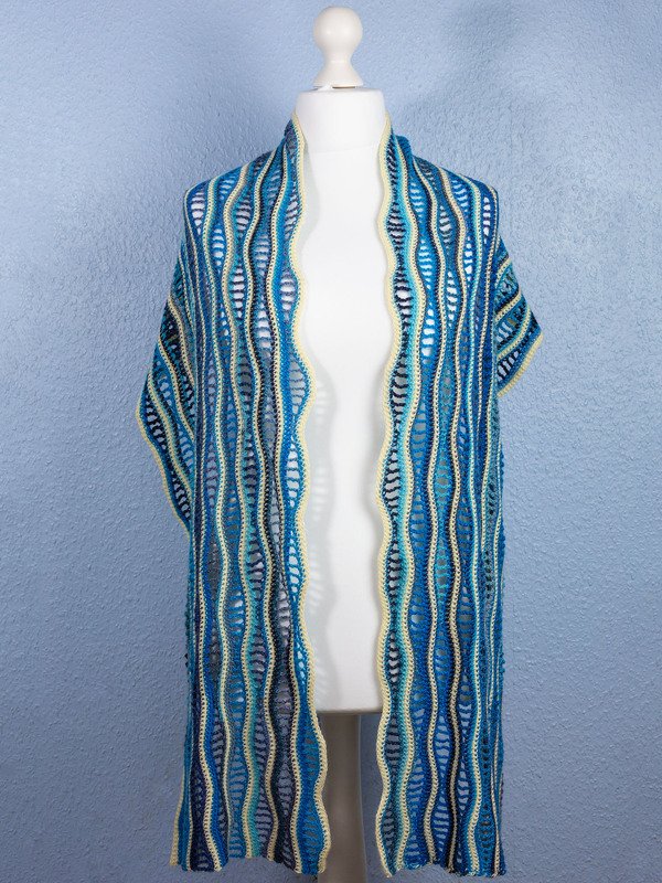 „Sanfte Wellen“ ist ein üppiger und wärmender Schal, der auch gut als Stola und Schultertuch getragen werden kann.