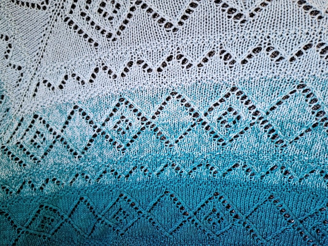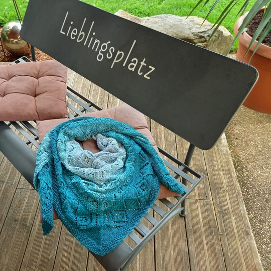 Das Dreiecktuch "Evangeline" wird in einem Mix aus Perl- und Ajourmuster aus einem 4-fädigen Bobbel gestrickt.