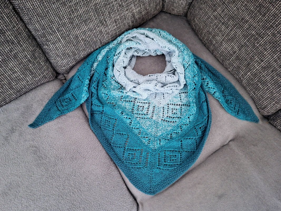 Das Tuch ist der ideale Begleiter für die Übergangszeit, aber auch als Schalersatz im Winter oder als Schultertuch für laue Sommerabende bestens geeignet.