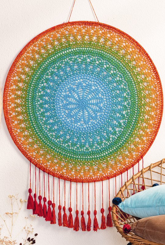 Du suchst noch nach einem bunten Hingucker für Kinderzimmer, Terrasse oder das Wohnzimmer? Dann haben wir hier was für dich! Dieser hübsche Traumfänger strahlt so viel Lebensfreude und positive Energie aus, dass schon das Häkeln ganz viel Freude bereitet. Da der Farbverlauf von Hellblau über Grün, Gelb, Orange und Rot direkt aus dem Garn kommt, ist auch kein lästiger Farbwechsel notwendig und das Modell kann von innen nach außen in Runden und an einem Stück gehäkelt werden. Das perfekte Projekt zum Mitnehmen und unterwegs Häkeln!