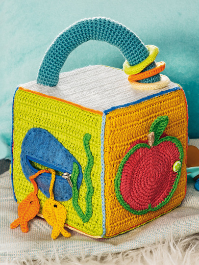 Kommt in der Familie oder im Freundeskreis ein Baby zur Welt, stellt sich meist die Frage nach einem Willkommensgeschenk. Aber was ist wirklich sinnvoll? Auch kreativ, originell und praktisch sollte es sein. Wie wäre es mit diesem selbst gehäkelten Lernwürfel? Sobald der Neuankömmling beginnt, seine Umgebung zu erkunden, animiert der Würfel mit seinen kräftigen bunten Farben sowie verschiedenen Materialien und Oberflächen dazu, die vielen kleinen, zum Teil versteckten, Aktivitätsmöglichkeiten zu entdecken. Die sechs Seiten des Würfels sind ausgestattet mit verschiedenen Verschlussmöglichkeiten, mit Holzperlen, Knöpfen, Ringen, einem Spiegel und einem kindgerechten Griff zum sicheren Greifen und Anfassen.