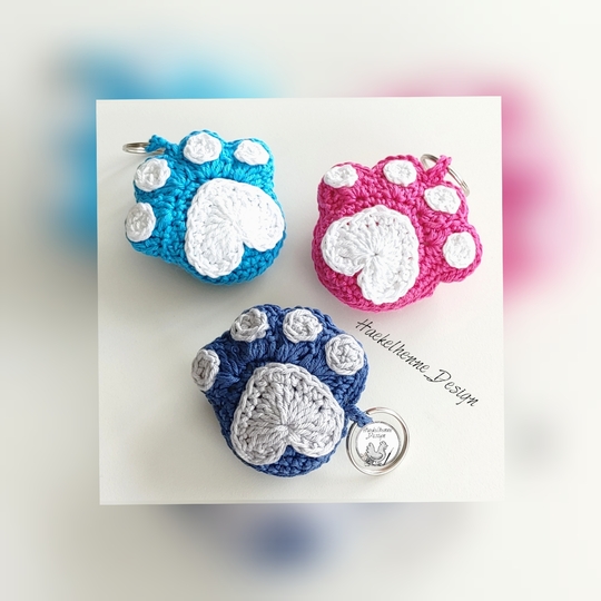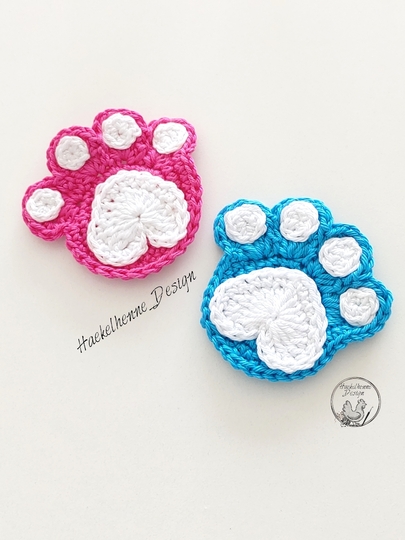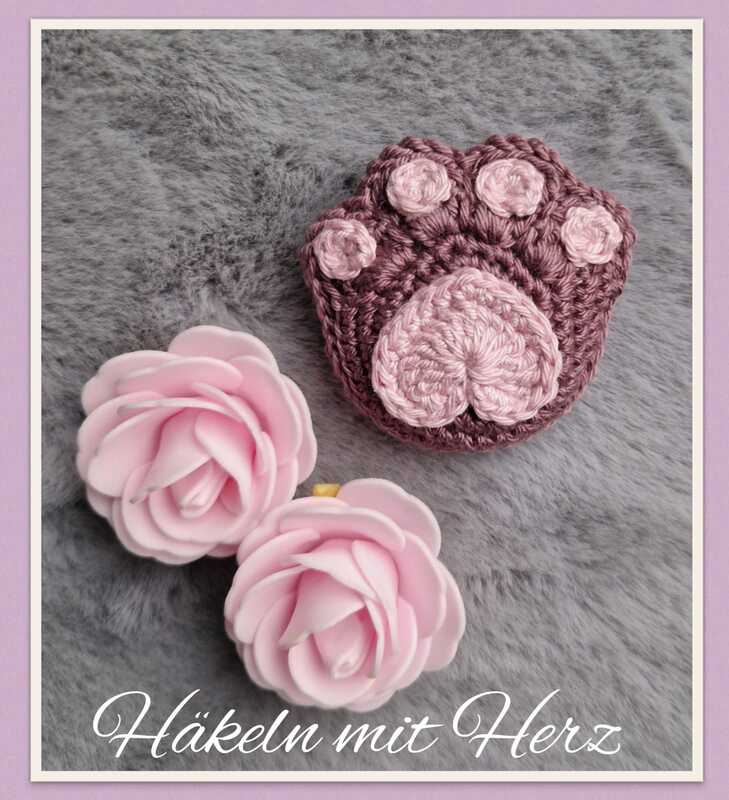 Das Pfötchen ist im befüllten Zustand ca. 6,5 cm breit und 6 cm hoch. Dieses Maß bezieht sich auf die Arbeit mit einer NS von 2,5 mm. Dieses Maß kann durch den jeweiligen Häkelstil, Garn oder NS variieren.