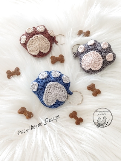 Mit dieser einfachen Häkelanleitung kannst du dir selbst oder allen Hundefreunden einen süßen Taschenbaumler, Schlüsselanhänger oder auch eine Applikation häkeln. Du verschönerst mit der Applikation Turnbeutel, Kissenhüllen, Decken und vieles mehr. Dieses Projekt eignet sich prima um deine Wollreste zu verarbeiten und gleichzeitig Freude zu verschenken. Das Pfötchen kann auch wunderbar als Babyrassel gearbeitet werden, es passt ein rundes Rasselwerk problemlos hinein.