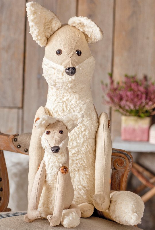 Die beiden süßen Füchslein werden aus Leinenstoff und Baumwoll-Teddyplüsch genäht. Kuscheltiere selbst zu nähen, erfordert zwar einen etwas größeren Zeitaufwand, da zusammen mit der Erstellung des Schnittmusters, dem Zuschnitt und dem Vernähen schon einige Stunden Arbeitszeit eingeplant werden müssen, aber der Aufwand lohnt sich! Denn das Ergebnis ist ein wunderbares Geschenk für Kinder, aber auch für erwachsene Kuscheltierfans. Das niedliche Duo macht zudem auch eine sehr gute Figur auf dem heimischen Sofa. Mithilfe der ausführlichen Nähanleitung inklusive Schnittmuster lassen sich die Beiden problemlos nacharbeiten.