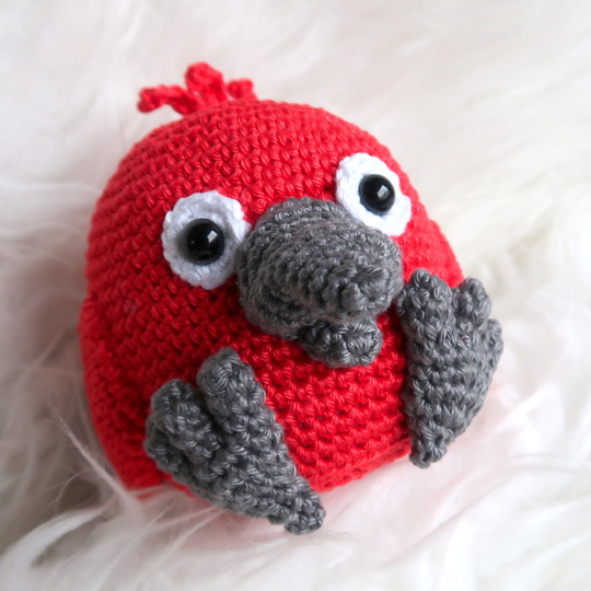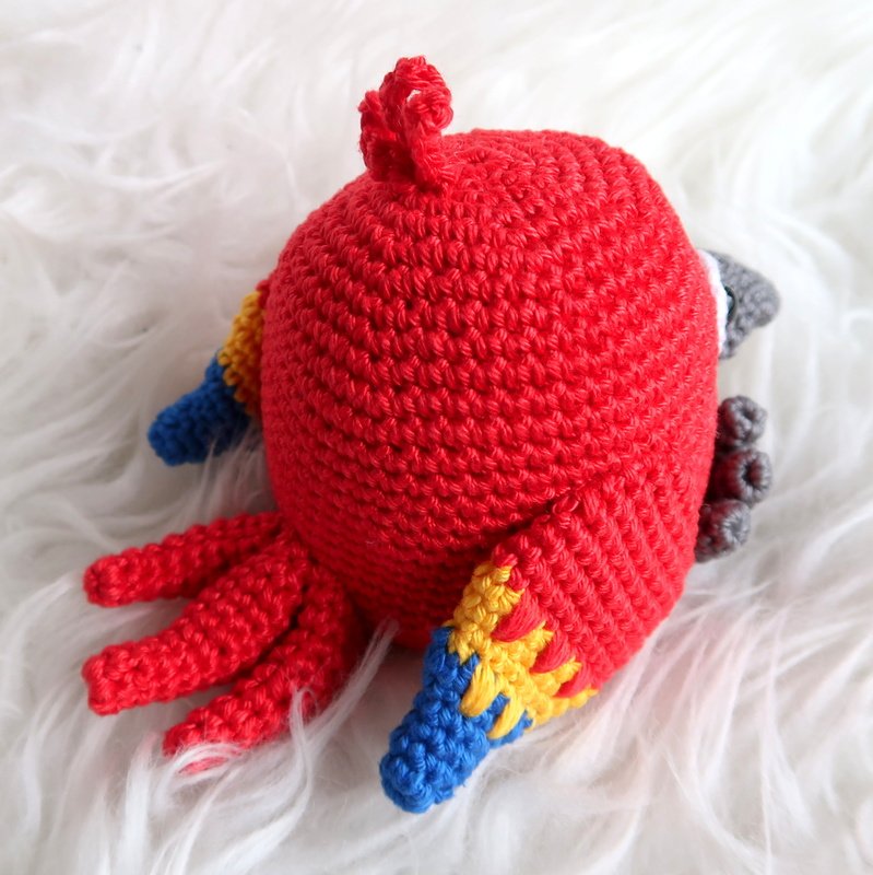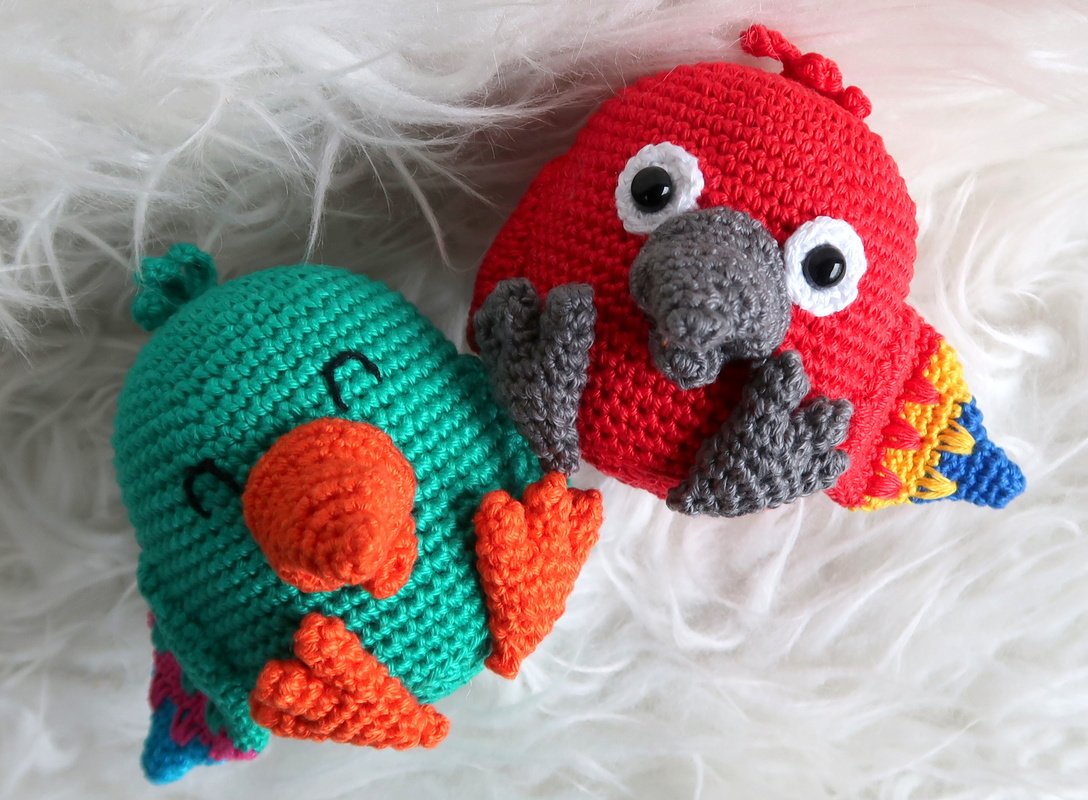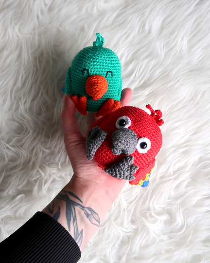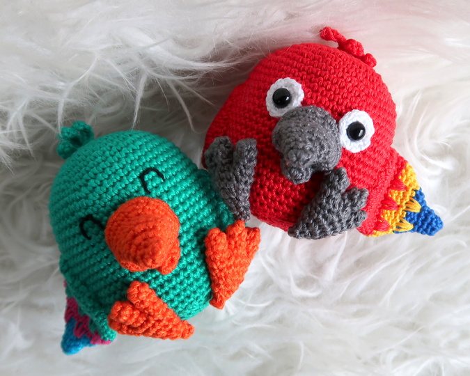 Wenn du mit Baumwolle (125m LL auf 50g) häkelst, wird dein Papagei ca. 9cm hoch.