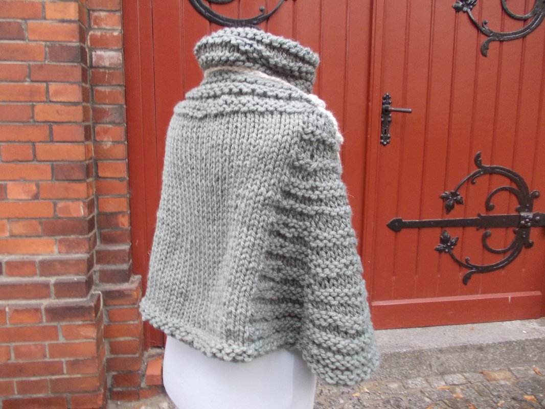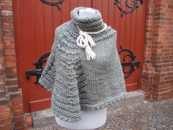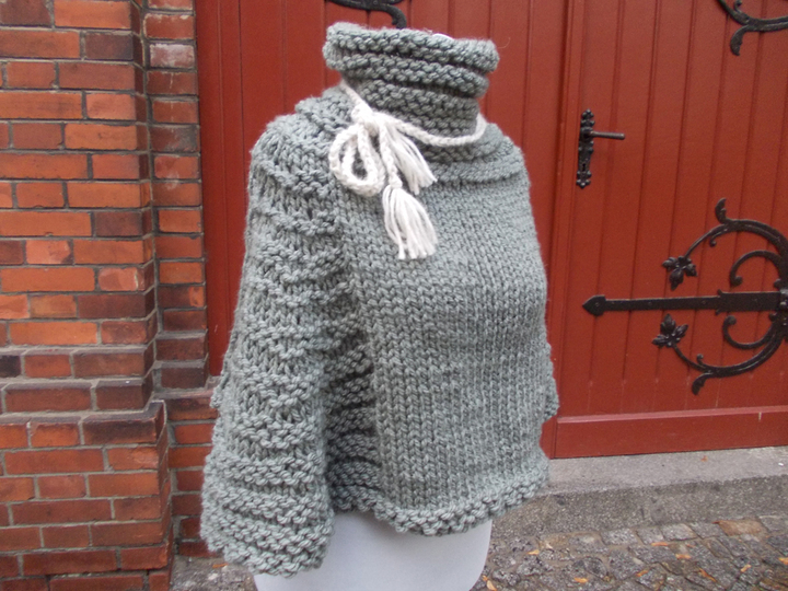 Die Schnellstrickerinnen unter Euch sind an einem Abend mit diesem Modell fertig. Ganz entspannt mit Nadel Nr. 10 und ca. 500 g - 700 g Matrial strickt sich dieser Poncho, welcher auch als Pullover getragen werden kann, ganz leicht. Da sind noch Geschenke offen für Weihnachten oder den nächsten Geburtstag? Mit diesem Modell kann man nichts falsch machen. Gesamtlänge (variabel, siehe Anleitung) mit Halsabschnitt 85 cm. Man ist eingehüllt und hat dennoch Bewegungsfreiheit.