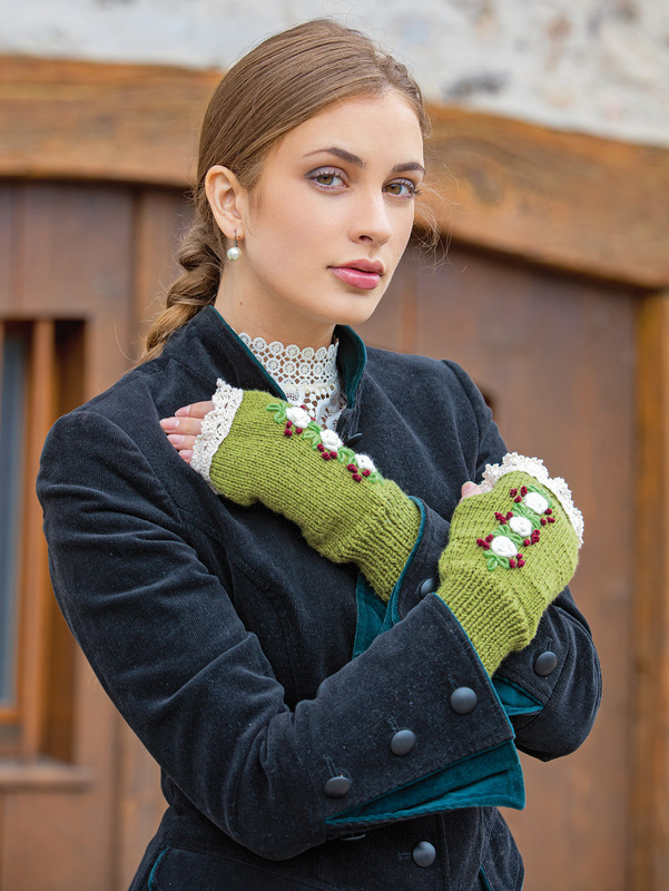 Handstulpen haben den Vorteil, dass man sie sich einfach nur überstülpen muss, und schon werden die Hände und Handgelenke gewärmt, ohne dabei die Bewegungsfreiheit der Finger einzubüßen. Diese nostalgischen Handstulpen sind mit der dekorativen Häkelrüsche und den aufgestickten Röschen auch optisch ein Hingucker. Die Handstulpen werden im Rippenmuster und glatt rechts gestrickt. Die Häkelrüsche wird nach Häkelschrift gehäkelt und die Röschen werden mit Wickelstichen, Margeritenstichen und Knötchenstichen gestickt. Dank der ausführlichen Anleitungen ist das Nacharbeiten auch für ungeübtere Handarbeiterinnen kein Problem.