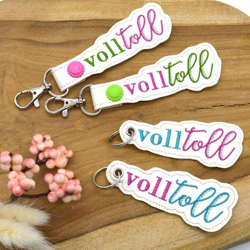 ITH Stickdatei für einen Anhänger mit dem Spruch -voll toll-