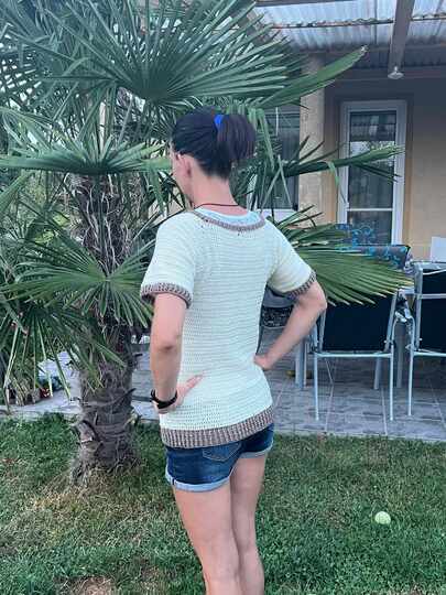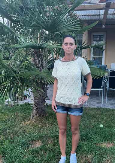 Ich habe meinen Pullover für die Konfektionsgröße 42/44 gehäkelt.