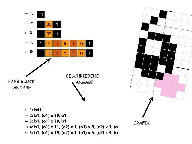 - ausgewiesener Wollverbrauch in Meter & Knäuel & Farbnummer (gesamt & für jedes Bild)