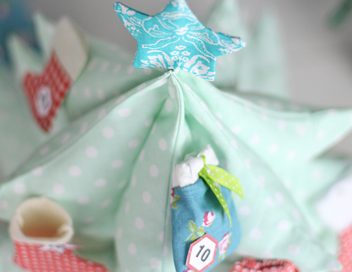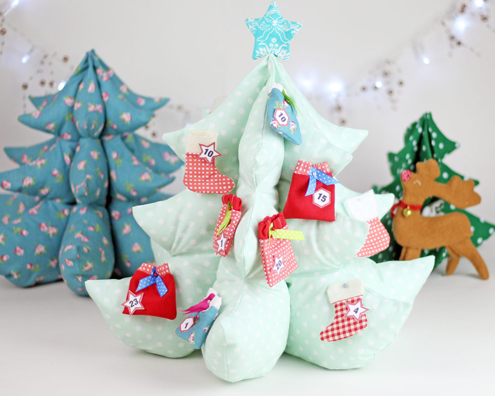 Nähe dir deinen eigenen Adventskalender mit dieser Nähanleitung für einen 3D-Weihnachtsbaum mit befüllbaren Säckchen oder Stiefelchen und einem Stern. Der Baum kann in 2 Größen genäht werden: 32cm hoch oder 45cm hoch. Für beide Größen sind die Schnittmuster enthalten.
