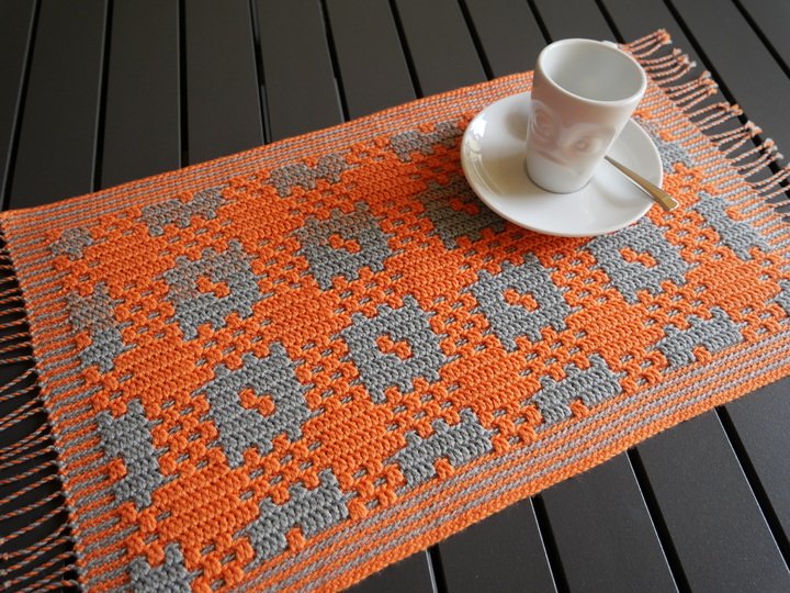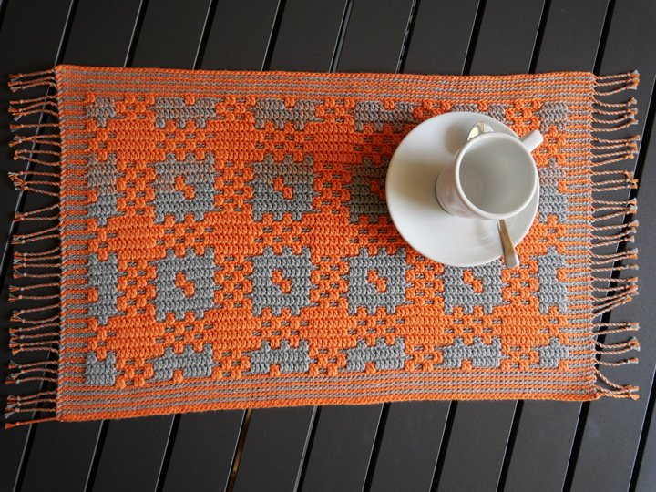 Das Deckchen hat bei mir eine fertige Größe (ohne Fransen) von 42 x 27 cm
