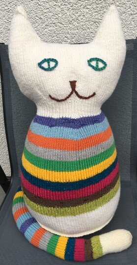 Die Katze ist sehr dekorativ und bringt Leben ins Wohn- oder Schlafzimmer. Von Kindern wird sie immer gerne zum freudvollen Spielen genommen, da sie großen Aufforderungscharakter hat. Das Stricktier eignet sich auch bestens als Geschenk.