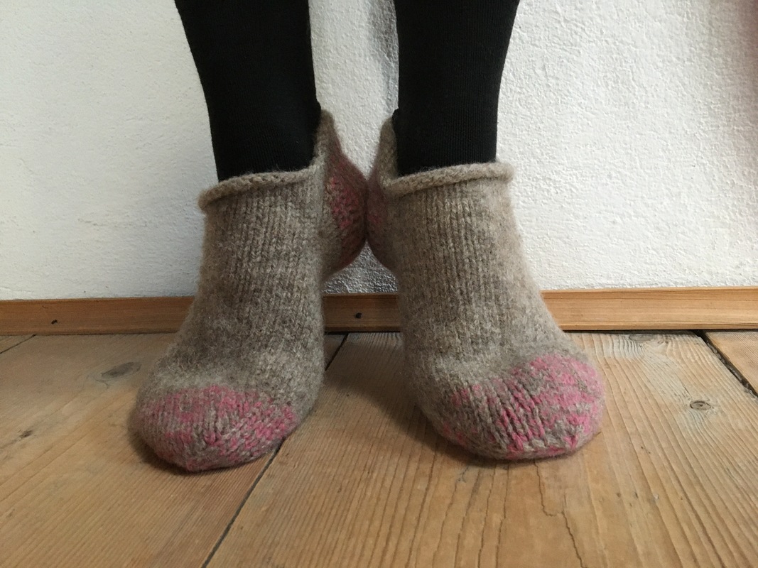 Wohlig warme Haus- und Hüttenpatschen für kuschelige Winterabende. Auch als Geschenk gut geeignet und schnell anzufertigen.