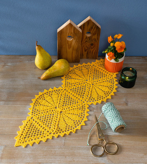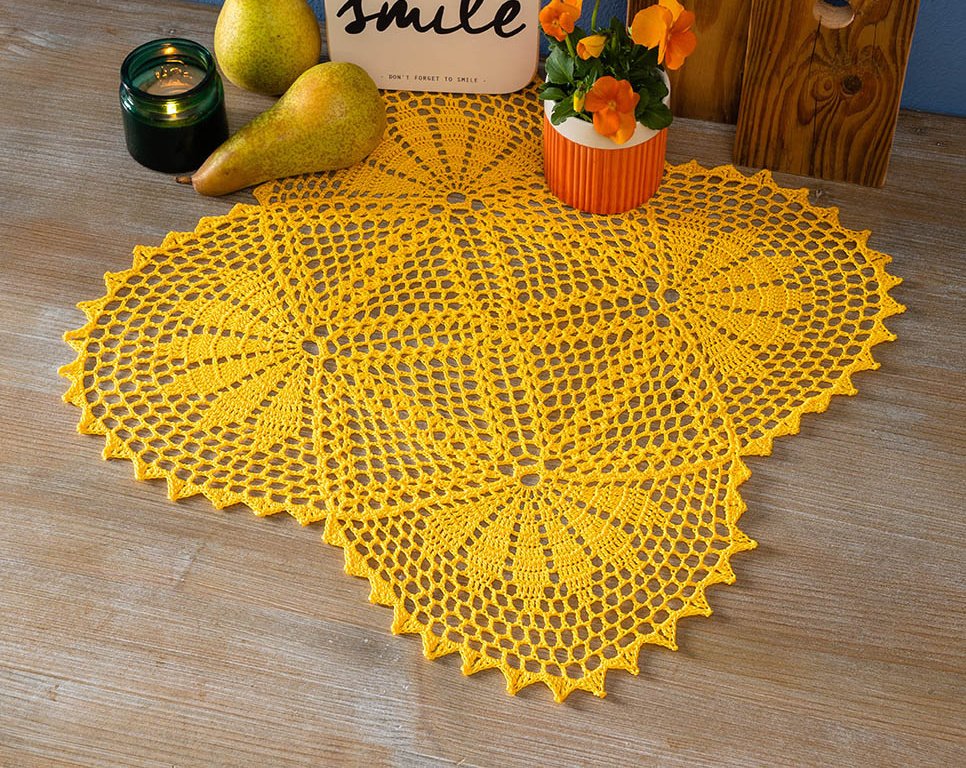 Für das kleinste Deckchen: ca. 30 g Baumwollgarn DIANA UNI 10 in Gelb