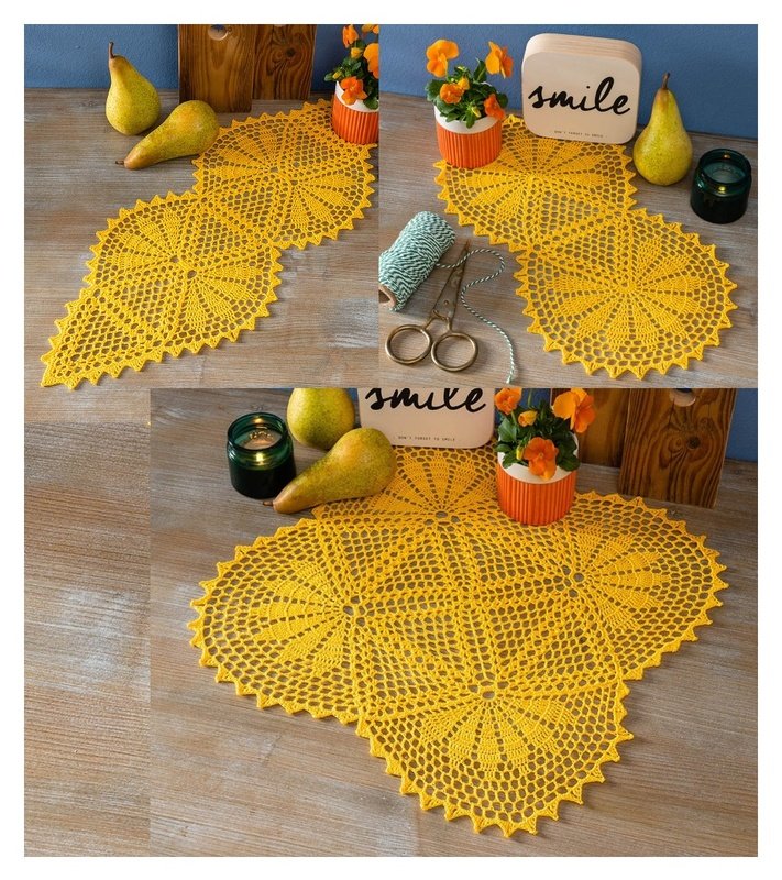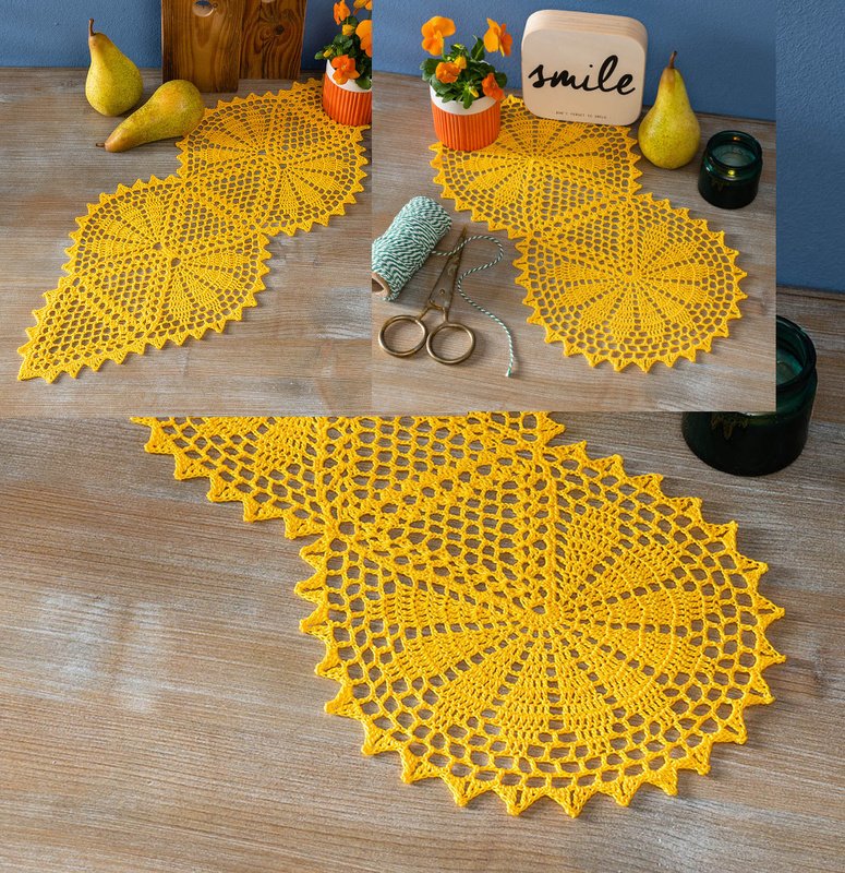für das mittlere Deckchen: ca. 40 g Baumwollgarn DIANA UNI 10 in Gelb