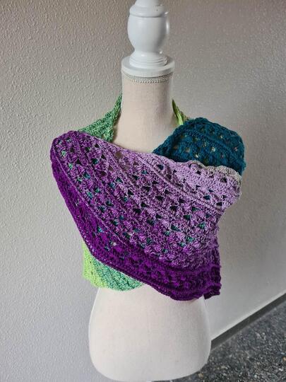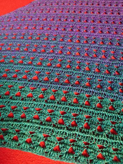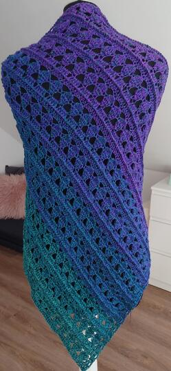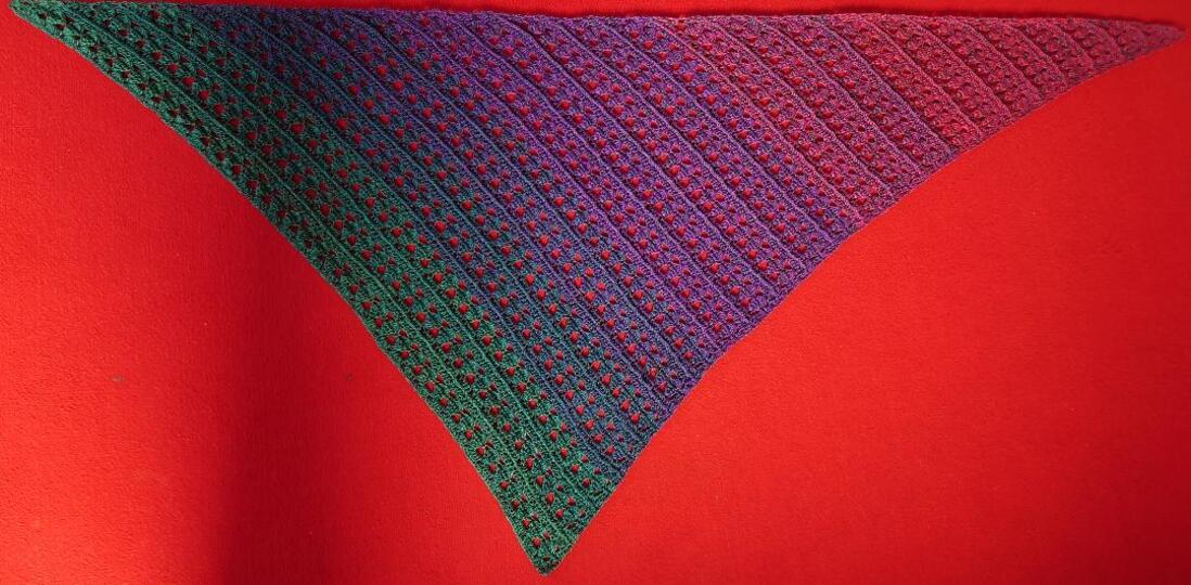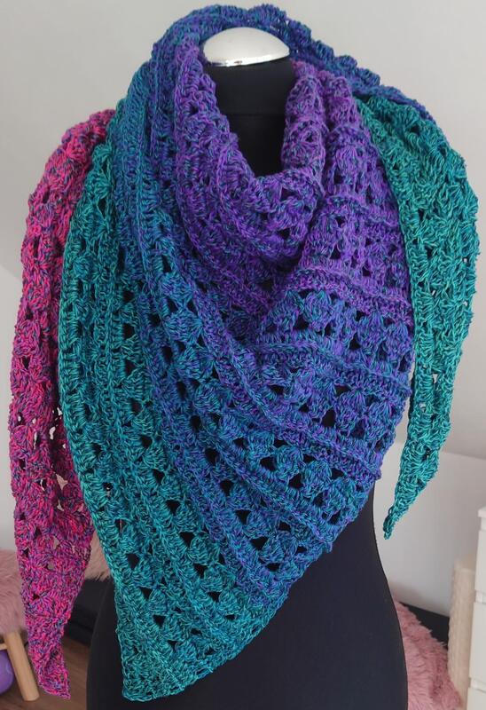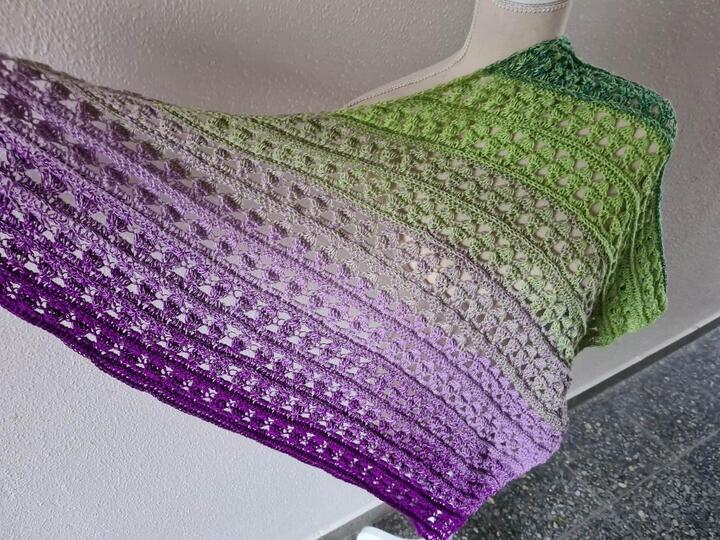 Die Anleitung zum Tuch besteht aus schriftlich ausformulierten Reihen und beinhaltet eine Häkelschrift.
