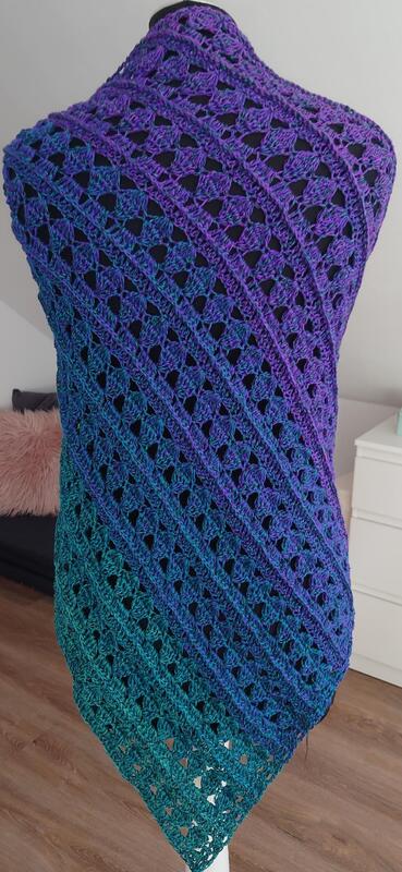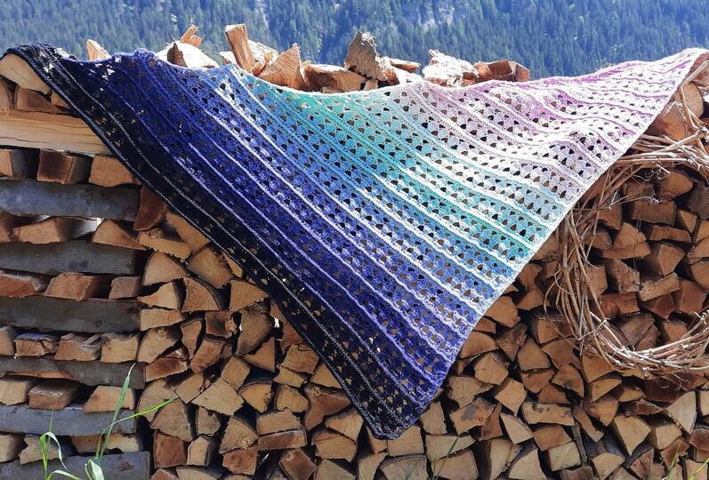Ihr solltet ein Farbverlaufsgarn mit einer Lauflänge von mindestens 750m nutzen. Nach oben hin sind euch bei der Garnmenge natürlich keine Grenzen gesetzt.