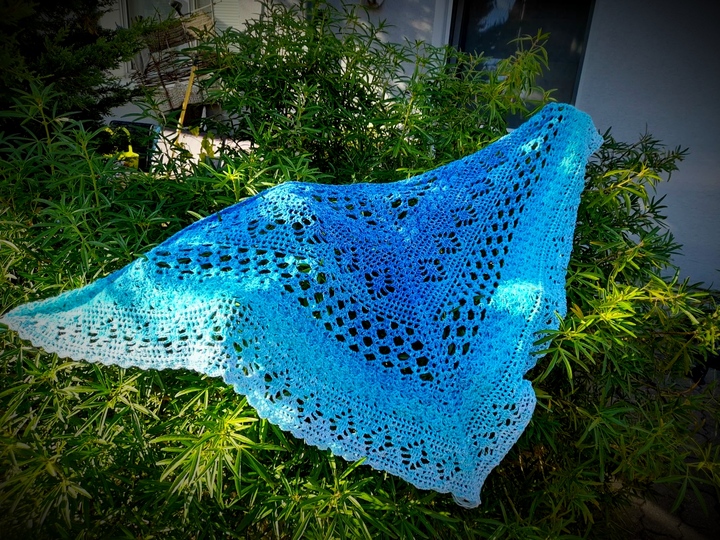 Je nach Garn und Nadelstärke variiert die Größe des Tuches