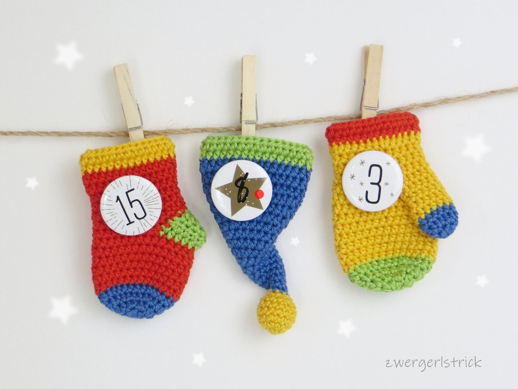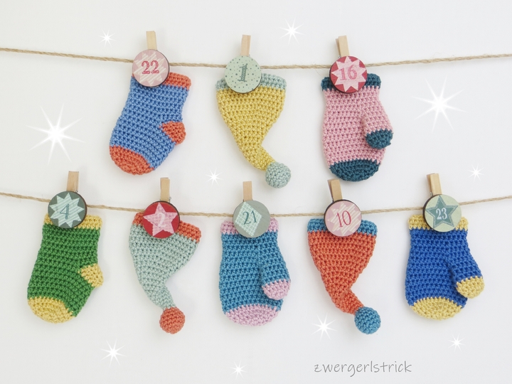 süßer Adventskalender - ganz klassisch mit Söckchen, Handschuhe und Zipfelmütze