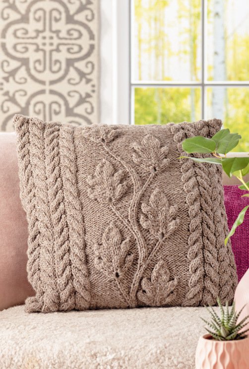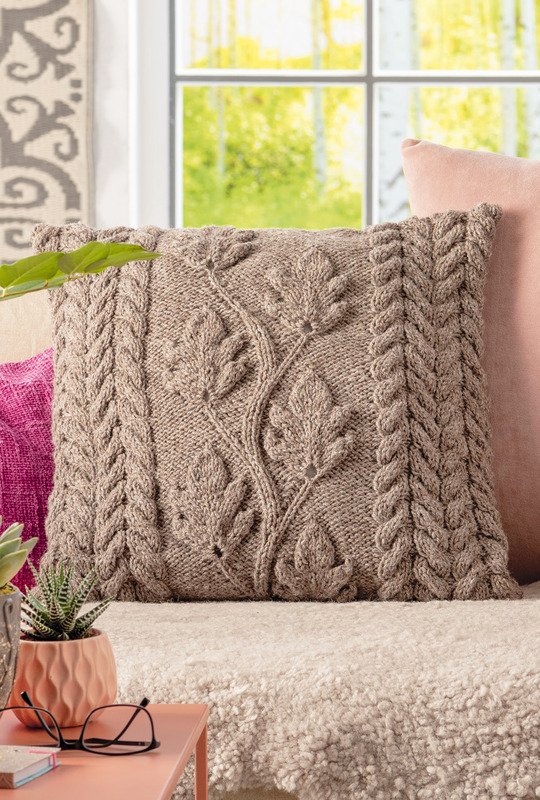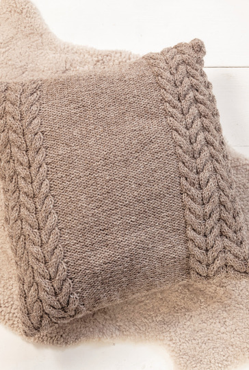 Für das Kissen mit Eichenlaub- Junghans Wollversand "Landwolle" (60% Schurwolle, 40% Polyacryl, LL = 200 m/100 g):- 300 g Taupe (Fb 125-875)