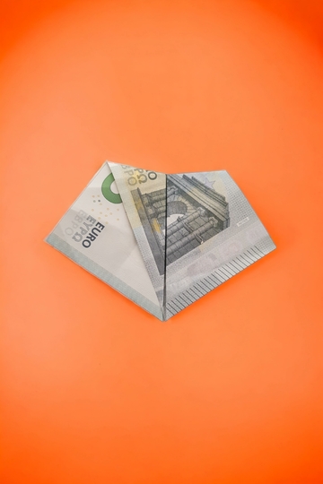 Das fertig gefaltete Objekt, aus einem 5 Euro Geldschein, hat später einen Durchmesser von max. 12cm.