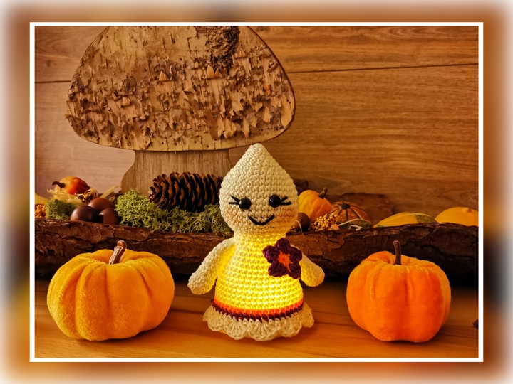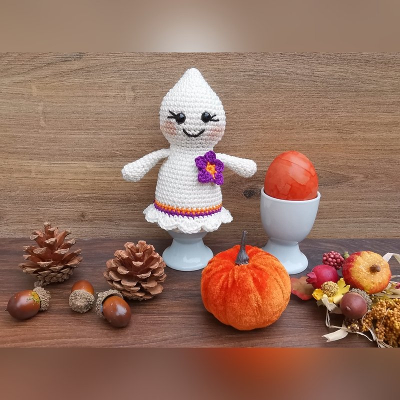 Diesen süßen kleinen Schatz hier kannst du entweder hinstellen oder aufhängen. Falls du hohe Eierbecher hast, kannst du ihn sogar als Eierwärmer verwenden. Wenn du ein LED-Teelicht in den Bauch stellst, dann leuchtet dein Geist schön im Dunklen (Bitte nicht unbeaufsichtigt lassen. Keine Haftung für Schäden).