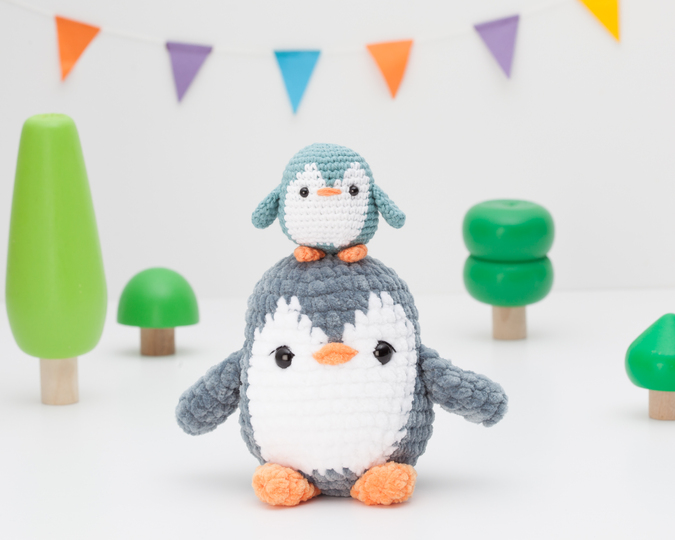 Für dieses Muster habe ich zwei Pinguin-Modelle kreiert: einen kleines und einen großes.