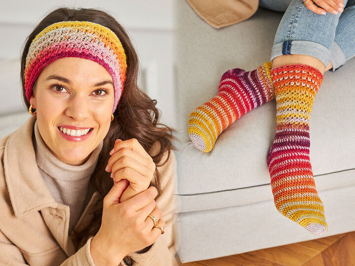 Mit Paint Socks können Sie wunderschöne Socken und Stirnbänder häkeln. Die Socken sind warm und bequem und passen perfekt zu jedem Outfit. Das Stirnband schützt Ihre Ohren vor Kälte und sieht auch noch toll aus.