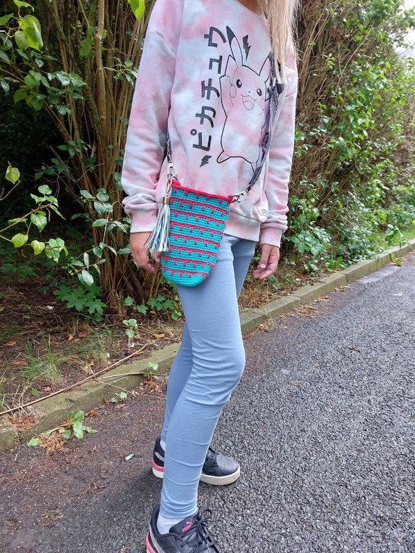 vielen Dank für Dein Interesse an meiner Häkelanleitung. Du erhälst eine Häkelanleitung per PDF für eine kleine Umhängetasche, die man auch als Handytasche nutzen kann