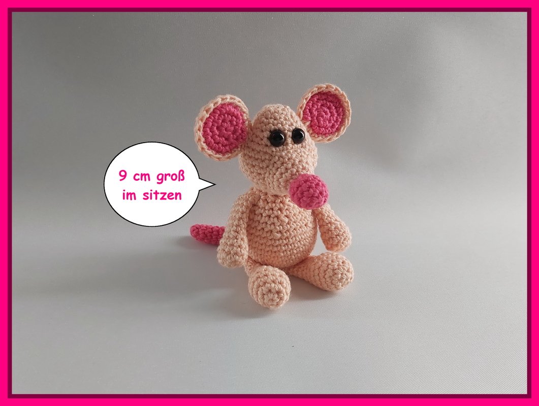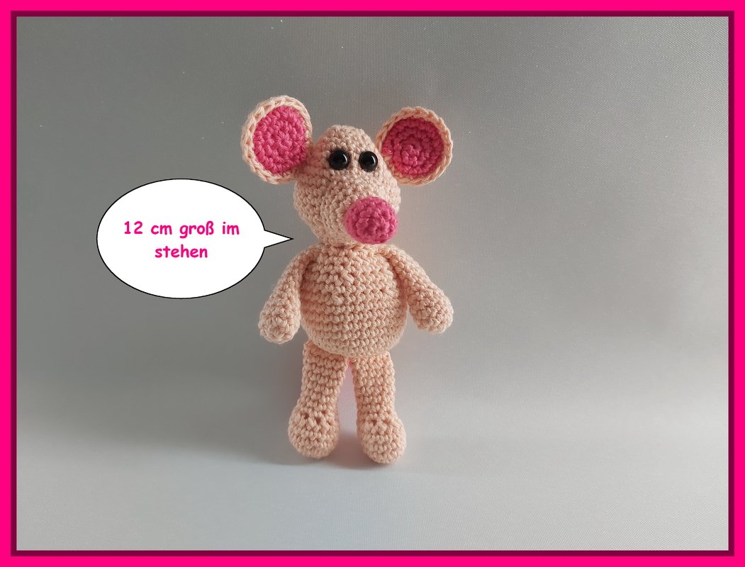Sitzend ist die Maus 9 cm und stehend 12 cm.