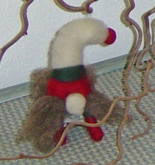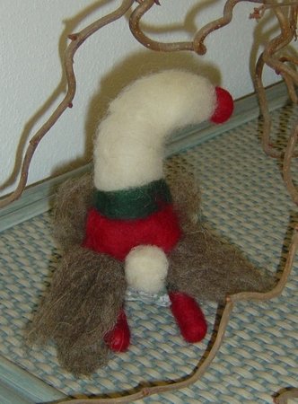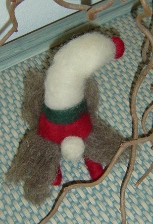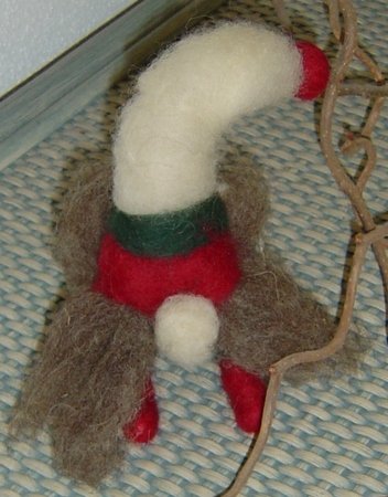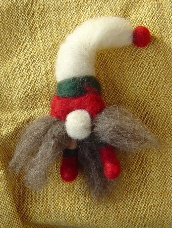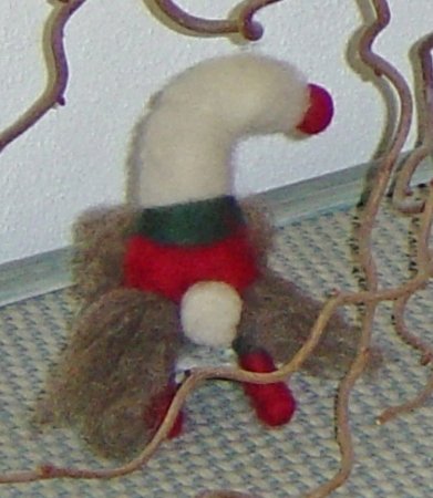 Insgesamt ca. 30 g Schafwoll-Vlies plus Kammzug (Märchenwolle) in den gewünschten Wichtelfarben, Filzunterlage, Filznadel grob, 2 Pfeifenputzer.
