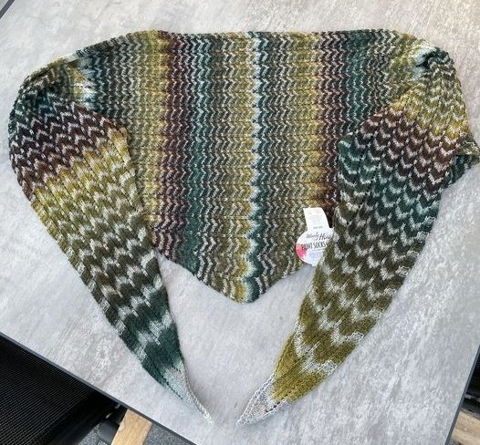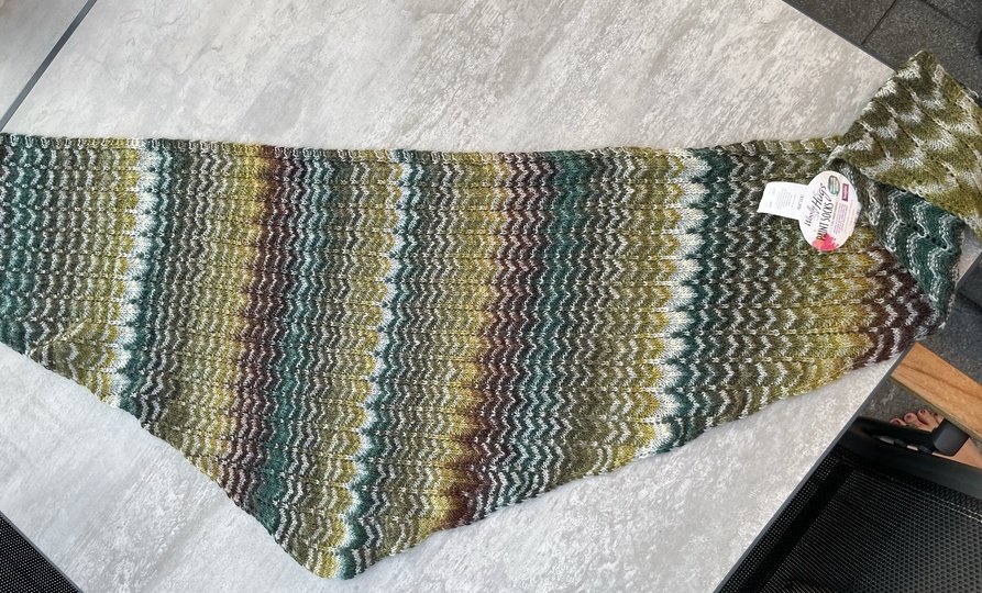 Das Tuch ist nach einer ausführlichen Anleitung mit großer Strickschrift nachzustricken