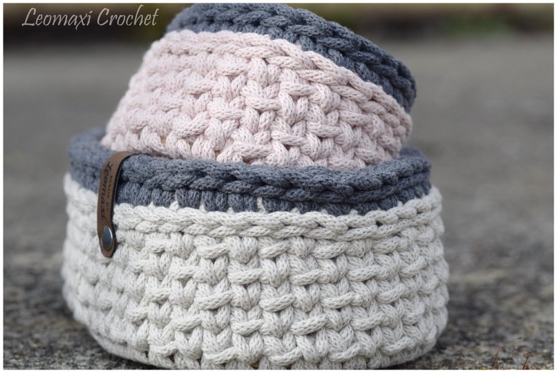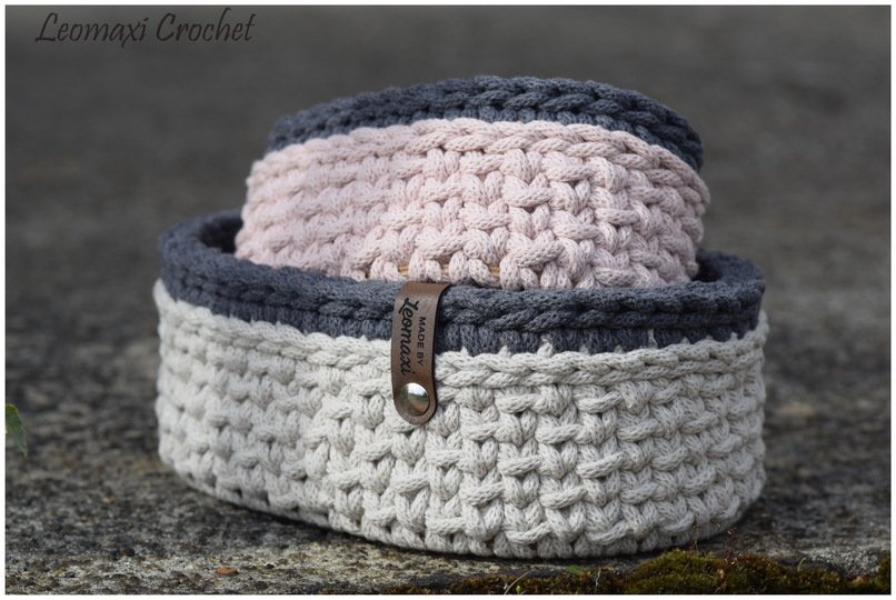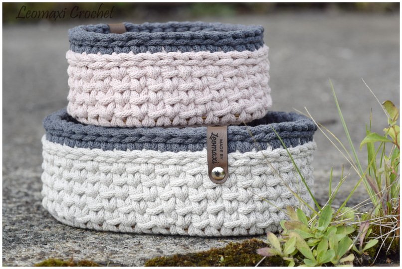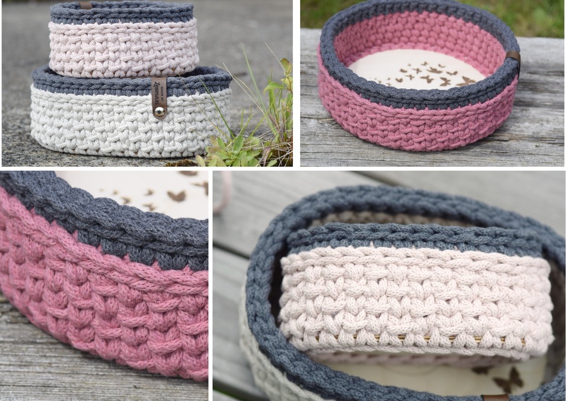 Das Körbchen ALVA ist ein besonderer Hingucker, denn hier wechselt sich ein schönes Perlmuster im unteren Bereich mit einem schlichteren Muster am Rand ab. Der obere Körbchenrand ist in einer Kontrastfarbe gearbeitet. Die Kettmaschenrunde grenzen beide Muster voneinander ab und sorgen gleichzeitig für Stabilität.