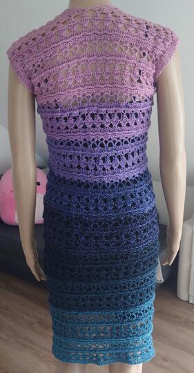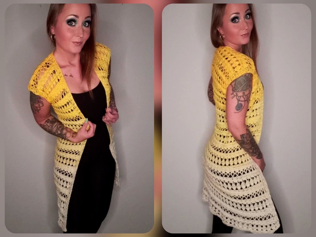 Die Weste Elif wird an von unten nach oben gehäkelt und besteht aus sich immer wiederholenden Reihen. Deshalb gelingt die Größenanpassung leicht und eignet sich perfekt für Farbverlaufsgarn.