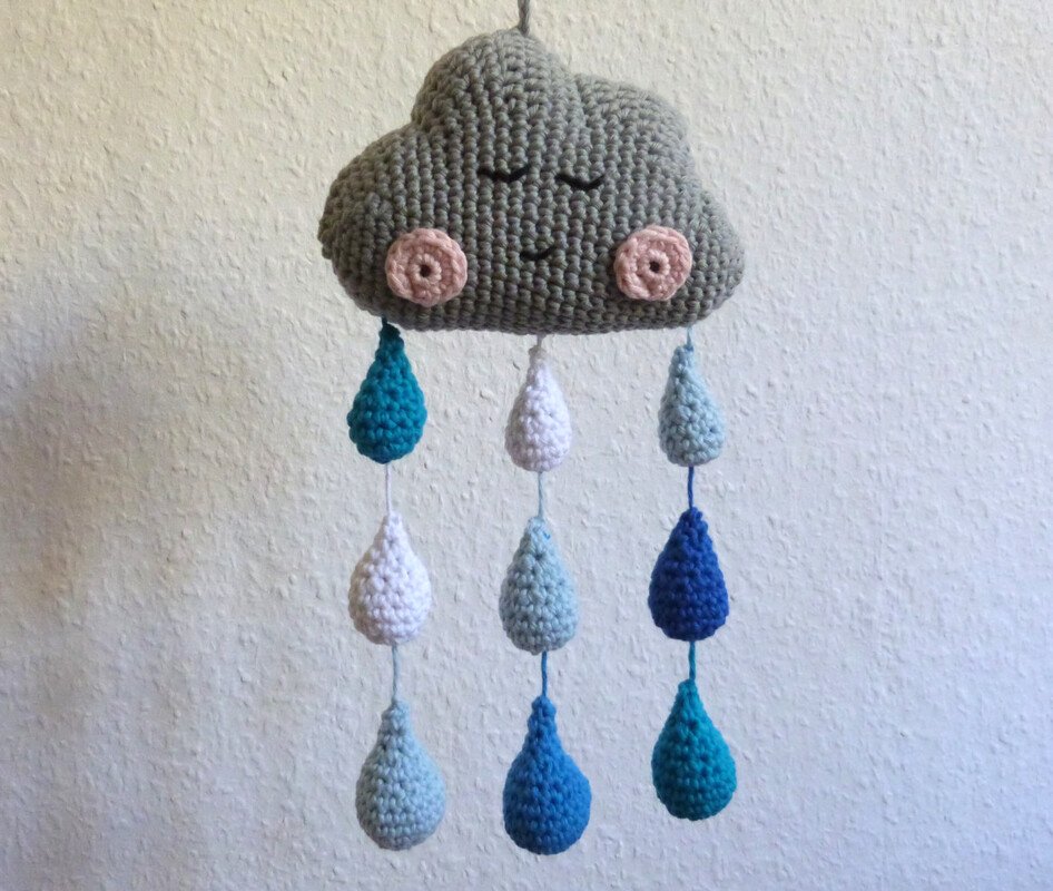 Die 11-seitige Anleitung begleitet dich Schritt für Schritt bis zu einem tollen Mobile für dein Baby. Die Wolke sowie 3 verschieden große Tropfen werden detailliert beschrieben. Mehr als 40 Fotos helfen dir dabei, den Herstellungsprozess nachzuvollziehen. Die Anleitung beinhaltet keine Grundlagen sondern setzt Häkelkenntnisse voraus. Folgende Techniken werden verwendet: Luftmaschen, feste Maschen, Kettmaschen, halbe Stäbchen, Stäbchen, Häkeln in Runden, Zunahme und Abnahme von Maschen, sticken und nähen.
