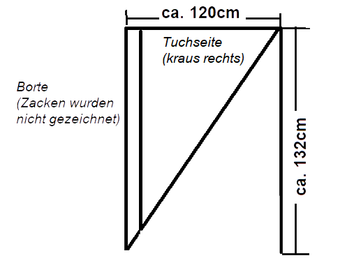 Mein Tuch aus Seiden-Mohairgarn mit einer Lauflänge von ca. 210m/25g hat eine Größe von: