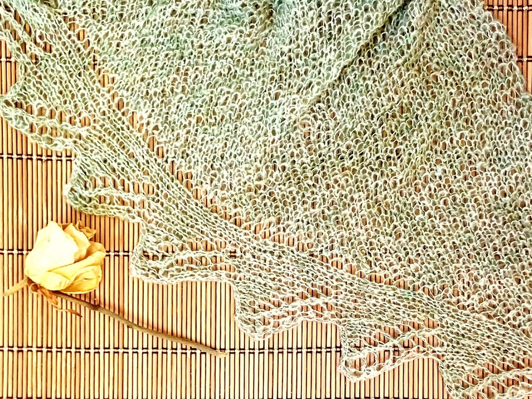 Das Dreieckstuch "Alora" wird in einem Stück gestrickt. Wir fangen ganz klein an und werden immer länger und breiter. Die Spitzenkante wird direkt mitgestrickt. Dadurch das der Tuchteil und der Spitzenteil unterschiedliche Strukturen haben, ERSCHEINT die Spitze wie angestrickt, sie wird ABER direkt mitgestrickt. Das Muster prägt sich schnell ein und somit ist dieses Stricktuch ein Projekt für Abende vor dem Fernsehn und dem gemütlichen Feierabend stricken. Aus Mohairgarn bekommt es eine besondere Leichtigkeit, es kann aber jedes andere Garn verwendet werden, auch Garnreste der gleichen Garnstärke, Das Tuch ist auch für Strickanfänger mit Grundkenntnissen.
