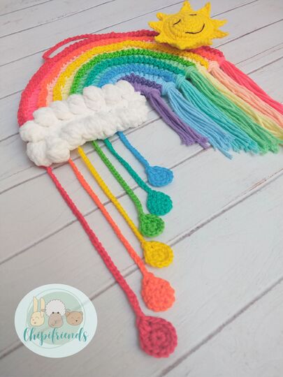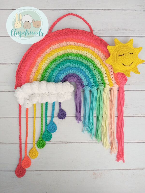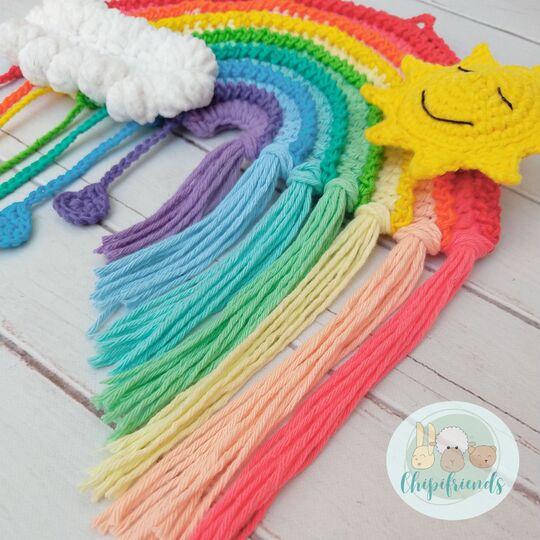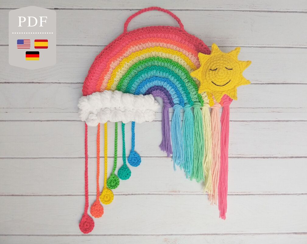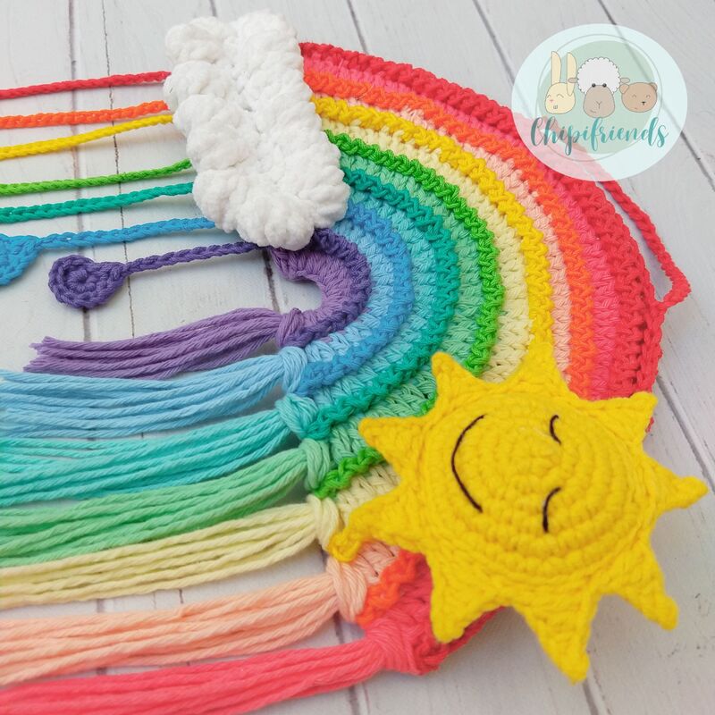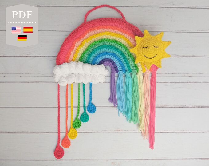 Mit dieser Häkelanleitung können Sie Ihren eigenen Wandbehang-Regenbogen häkeln, mit dem Sie Zimmer, Babybetten oder Ihren Arbeitsplatz dekorieren können!