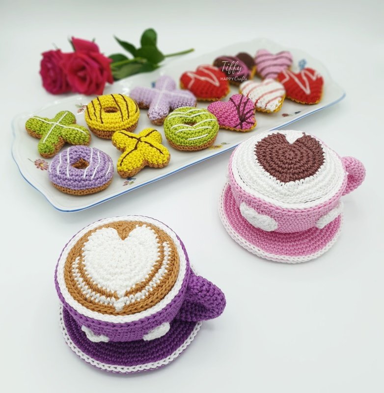 Hier ist eine leichte verständlichen Häkelanleitung für Liebestasse-Set: Cappuccino und heißer Kakao mit Herz-Latte-Art