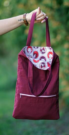 Dieser praktische Beutel kann nach Lust und Laune gewendet werden, er kann mit einer zusätzlichen Reißverschlusstasche genäht werden, welche aber auch einfach weggelassen werden kann.